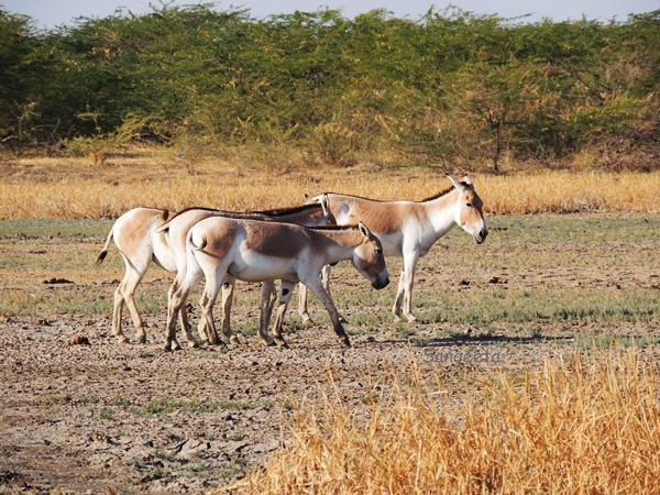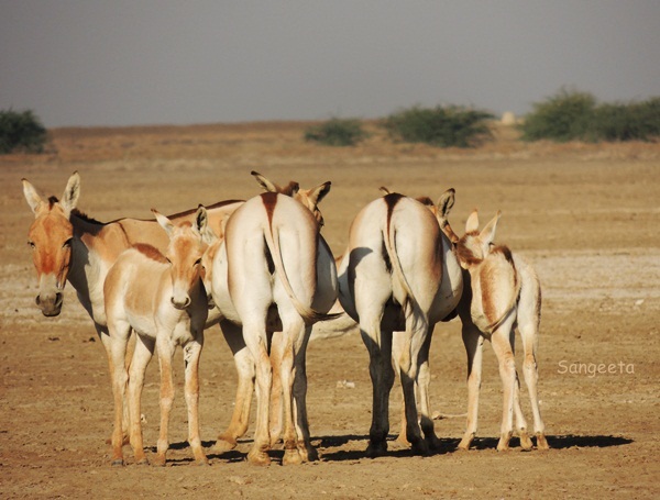 After a while, our vehicle moved through the desert area, negotiating through thorny shrubs, patches of desert vegetation and a group of white animals appeared in a far corner. I reluctantly got off the vehicle and walk towards them, imagining a group of donkeys that the neighbor hood washer man owned when I was growing up in the 70’s in India. A short walk ahead , I rubbed my eyes in disbelief. The beautiful creatures huddled together sporting the brown spots on their otherwise spotless cream color bodies was indeed the Wild Ass (ghudkur).
