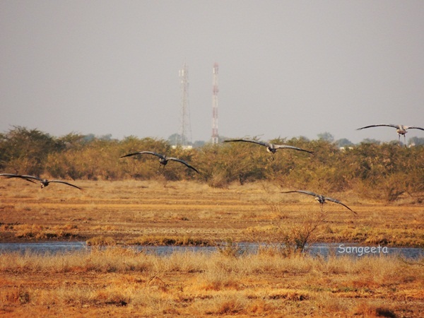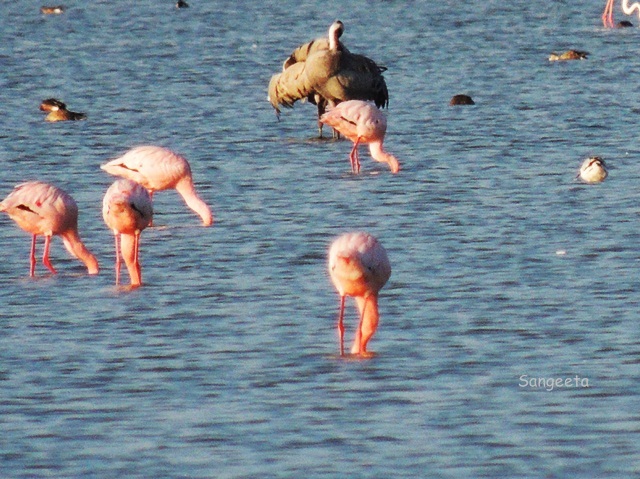 I waited in anticipation for the flamingos to look up, flutter their wings and show off their bright red hue. My focus and attention, occasionally tested by the bunch of flying cranes who soared high and then made a perfect landing on the parched ground, slowly unfolding their legs, reclining their body and regaining balance within seconds. I wish my life was like that, forever in balance.
