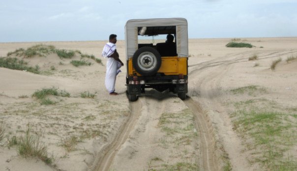 A few metres ahead, all that could be seen was undulating stretches of sand often drowned by the huge ocean waves from either side. Commonly referred to as the female sea and the male sea, it was a delight to hear the roaring Bay of Bengal on one side and the calm Indian Ocean on the other. I leave it to your interpretation of which is what !! The vehicle moved slowly sometimes on wet sand and often through water. There was a strange kind of silence and all I could hear was the sound of my breath, occasional cries of birds and the murmur of fellow passengers.