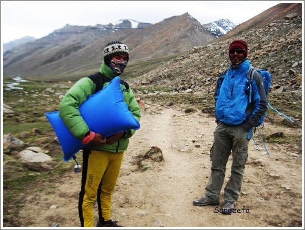 Team Leader Sumek and Sherpa Rinjee carrying oxygen pillow during the trek through the valley. Rinjee was like a shadow, walking at a distance but keeping a watchful eye incase I needed any help. I cannot forget the way he sprinting deep down to get water from Gouri Kund. Sumek is the man for all seasons, taking care of the needs of the entire group and making everyone comfortable.