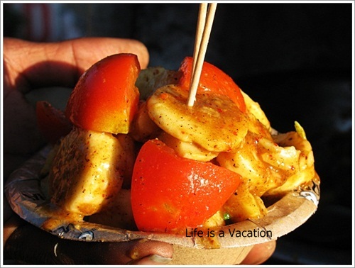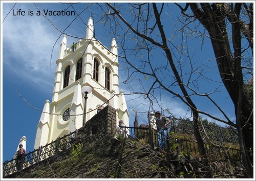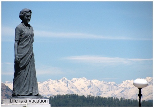 I started off with a bowl of fruit chat which was a combination of bananas, tomatoes, cucumber and apple amply peppered with chilly, lime juice and some exotic Indian spice. The street side vendor was proud of his mix and showed off his skills while I waited for my bite. He was absolutely right, the spicy sweet taste was quite an experience. A little further, the statue of India’s first woman prime minister pointed to the wonderful view of the snow clad mountains while old and young in colorful attire were enjoying the sunshine in front of the town hall. I went in and out of shops on the mall admiring the shawls, stoles and woolens and stood mesmerized by the church on the upper level before settling down with snacks and coffee in the decades old Indian Coffee House.