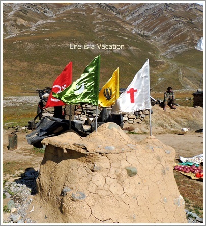 After a lazy walk for an hour, we reached a border camp of Indian army. The men in uniform welcomed us with warm water while our identity cards were checked and photographs taken for records. The legs were weary but the heart was far from it since an elusive mountain from across the border and the smiling face of god was to make an appearance in the following days.