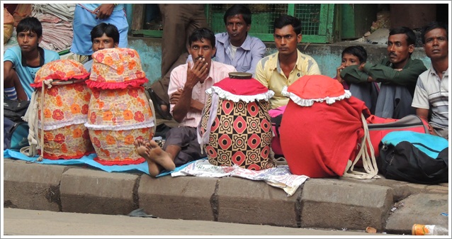 The autumn celebration of Durga Puja in Eastern India specially Bengal is incomplete without the rhythm of the “Dhak” or the traditional Indian Drum. As a child, I would race to the neighbourhood pandal often barefoot at the the sound beat of the Dhak ushering in the festive spirit. Dhak is integral to Durga Puja or the worship of the mother goddess as the Dhaki conjures different beats during different aspects of the Puja (Arati, Sandhi Puja, Bisarjan). They arrive from the rural areas of Bengal in the central station compound (Sealdah) a day prior to the festival waiting to be requisitioned by puja organizers. Some of them are full of life, filling the waiting time with their art while some wait with worried faces wondering whether they will find work.