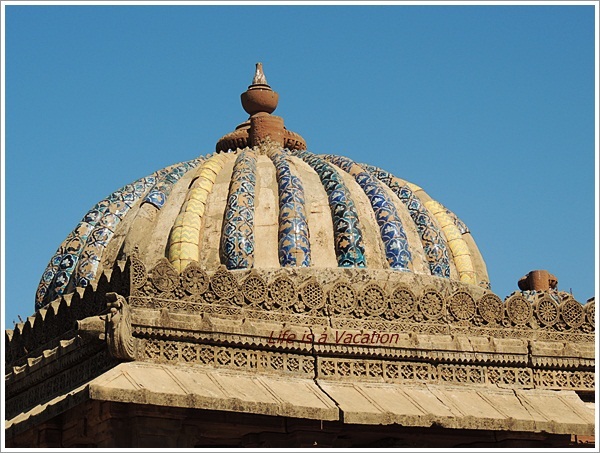 For a while, I forgot all about lunch admiring everything around. As, I sat there lost in time, my gaze fell on the bird who was hopping from dome to dome and finally settled on one. I wondered if it was the soul of a one whose memory lay within the cenotaphs or a soul traveler like me who is looking through the heart in search of experiences !! If you are following the tele serial “Saraswati Chandra” that is being beamed week nights you will realise that the lead pair were often romancing around the Chhatris. In conclusion, if you are in Bhuj do stop by at the Chhatris and your initial reluctance will soon be replaced by a song on your lips with gladness that you had stepped in there.