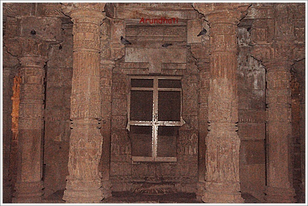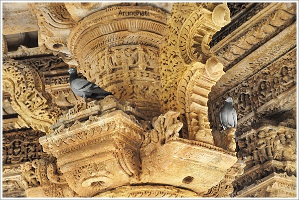 We climbed the steps to enter into the Sabha Mandap or the Meeting Hall which is open on 4 sides and stands on 52 carved pillars depicting stories from Indian Mythologies. The number 52 signifies the number of weeks in a year. I stood there, closed my eyes trying to feel the essence of years gone by but the sound of fluttering pigeons brought me back to reality after a while. I wondered if it was an act of welcome or goodbye for stepping into their home uninvited. We walked straight through the halls into the Guda Mandap which houses the Sanctum Sanctorum presently under lock and key.