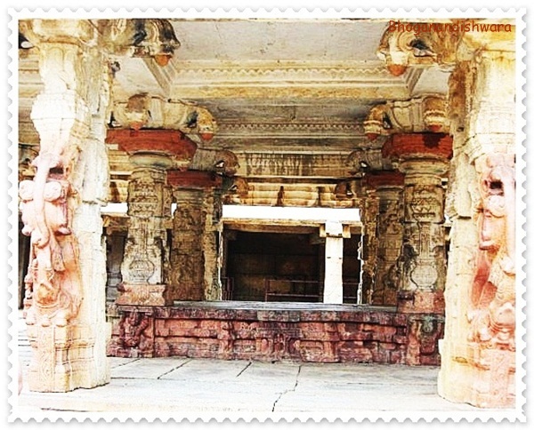 The temple complex also includes Devi temples dedicated to Girijambha and Kuchambha, a large Square stepped Tank, Vasanthamantapa, Tulabharamantapa and Navagrahas. The tank is at the far end of the temple and is lined with enclosures which appear to be the changing rooms. Apart from rain water, the source of water for the tank is unclear though there are stories of rivers feeding it from underground. Vasanthamantapa, located just opposite is noted to be the place where Shiva and Parvathi were married. It is open on all sides, each exquisite sandstone pillar relating a story about the divine wedding. It is an ideal location for marriage with all the 5 elements of nature in abundant attendance and ample showering of divine blessings. It is a popular choice for modern day couples intending to infuse heritage and divinity in their wedding venue and thats what the couple on television did !!