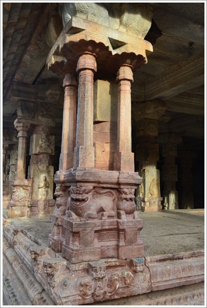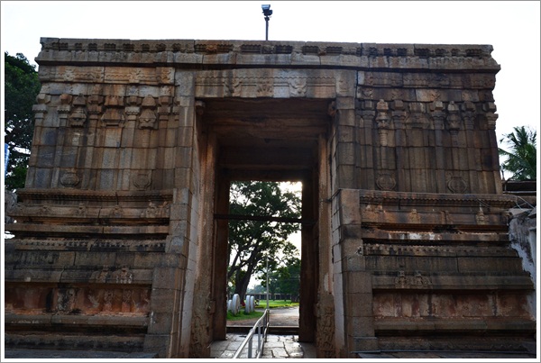 Tucked away in a small village enroute to Nandi Hills in the outskirts of Bangalore (about 50kms), this temple was originally constructed by Queen Ratnavali of the Bana dynasty in 9th century AD. It has been enhanced over the next 700 years by the Cholas, Hoysalas, Gangarasas, Pallavas and finally the Vijayanagar Empire. On entry to the temple premises, the impact of the Vijaynagar style of architecture akin to Hampi is amply evident. The pathway from the gate to the temple entrance is lined with trees and the lush green lawn stretched out on either side is soothing to the eye. A series of small enclosures which appear like stables or living quarters of guards can be seen on the far side of the lawn.