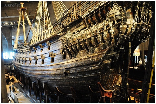 The gigantic ship at the entrance of the museum presented a story of tragedy and grand workmanship intended to be ahead of its times. Unfortunately, the designers grossly overlooked crucial aspects. “Vasa” was built over a period of nearly 3 years between 1625 and 1628 by Henrik Hybertsson and his brother under the patronage of King Gustav II Adolf. 17th century was a turn around time in sea warfare as sinking the enemy ship became passe and actually boarding the ship and capturing it or using cannons on it to fire across the line became the order of the day. The Warship “Vasa” was built for hand to hand combat as well as had a heavy cannon installed for sea warfare. It was designed such that more than 300 kg could be fired from one side making it the most talked about and fearsome war machine. This huge ship nearly 50m high and 70m long with a breadth of 12m sank within moments of setting sail on 10th of August 1628 for being top heavy with low ballast. The complete crew of 450 men including 300 soldiers perished along with the ship in Stockholm Harbour after sailing for barely 1300 metres.