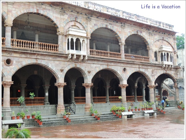 Rajwada Palace in Indore is one of its kind, not for the seven stories but for being partly built of stone and the remaining wood. Built in 1747AD by Malhar Rao Holkar it is influenced by Maratha, Mughal and French styles. More than 2 centuries later this palace is now in the middle of a very busy market (Khajuri Bazaar) and it is difficult to park around the palace. I had to actually jostle through the crowd to go across to the other side to get a proper view of the giant door. With about 45 minutes in hand, we entered the palace but the over enthusiastic rain god decided to shower his blessings right then 🙂 Well, rain soaked Rajwada was a beauty which am sure very few get to experience.