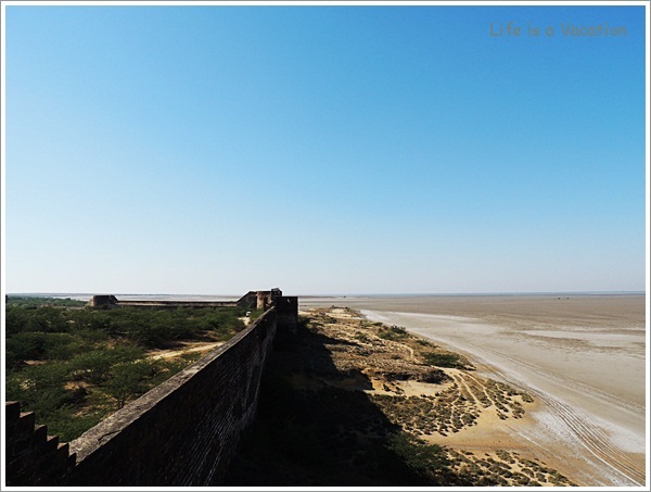 While on a trip to Kutch, we drove towards the westernmost point of India from Bhuj in search of the Lands end of our country when we reached Lakhpat. Once upon a time this dry area was a fertile green land which earned one lakh coins ( 10lakhs =1 million) on a given day through its crops. One of the boards at the entrance distinctly spoke about the advanced water management techniques deployed centuries ago through rain water harvesting, waste water management and the like. The fortunes of this flourishing town changed after the earthquake nearly 200 years ago when the river Indus changed its course.