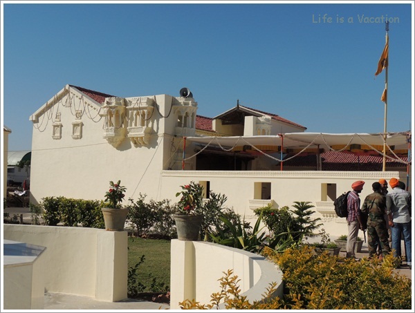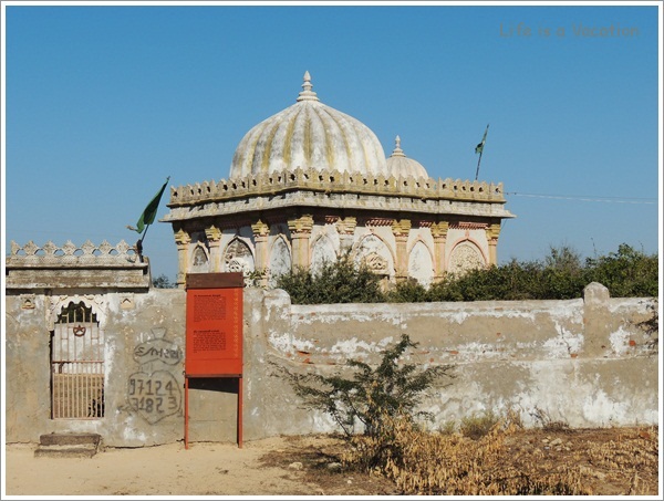 After paying our respects at the Gurudwara which is located close to the entrance, we decided to go towards the wall that once defined the fort. This gurudwara is famous for being the point where Guru Nanak, the Sikhism proponent stopped during his visit to Mecca. 2 small boys who were visiting the Gurudwara ran ahead of us in search of the sea along the fort wall only to be disheartened by the miles of sand that greeted them. We were disheartened too and then walked up the stairs along the wall to get a better view into the infinite area ahead that merged into neighbouring Pakistan. The BSF (Border Security Force) jawan was standing in attention with his gun which he kindly allowed us to touch and feel but pictures were a strict no-no. While walking back, I stopped near the tomb of the Sufi Saint Kamal Shah who had a quaint story associated with him.