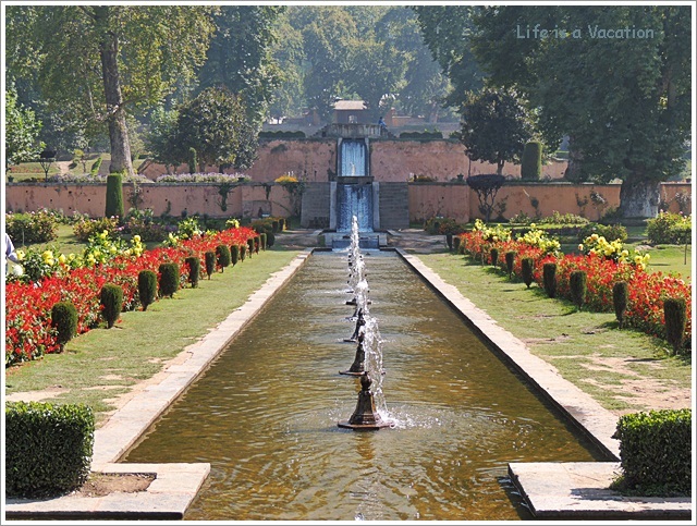 Next stop, Nishat Bagh was a perfect Persian Garden with a terraced layout lined with chinars and cypress through which water cascaded through gently and quietly. I stood at the edge of the highest of the 12 terraces admiring the beauty of it all, the green trees, the burst of colour from blooming flowers, the serene Dal Lake. I must unabashedly admin that I felt like a Mughal Queen for a few moments out to enjoy fresh in the air.