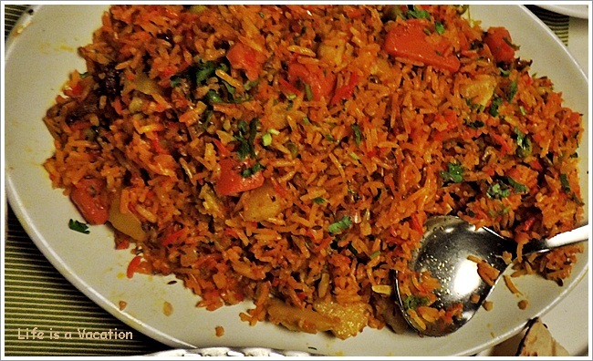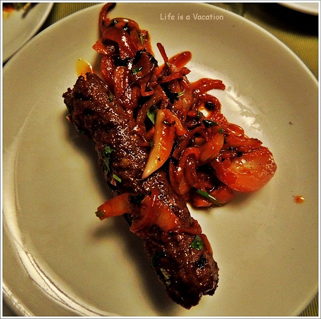The aromatic Pulao generously laced with dry fruits and saffron was a delight and combined with spoonfuls of the gravy accompanying the Lahabi Kabab tasted even better. Lahabi Kabab is flattened and pounded meat cooked with spices and yogurt.