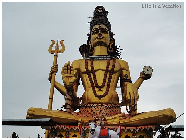 After this point, the walk gets interesting as we walk through a dilapidated doorway (Dharmaraja Dwara) referring to Mahabharata and some settlements where the monkey population seemed to out do humans. The road is flat but often slippery and while I watch my step, I also watch my breath. A couple of dharamshalas & temples housing sadhus and self styled god men were advertising to initiate people with the spiritual mantra as a panacea to all of life’s problems and a quick pass to god. I reach a beautiful temple (Gori Somnath), with exquisite carvings and the smoke from the lamps mingle with the monsoon haze to create a divine aura. Apparently the white shiva linga in the temple turned black after Emperor Aurangzeb looked at it when he came here at war. My hand reaches out for the bell for Shiva the creator for gifting me this beautiful journey and I turn around to find a handsome Shiva all of 90 feet in height gazing at me with compassion. I stand around sipping a glass of sugary lime juice for Rs 10/- from a makeshift canopy, catching up with a group of people who were resting under the tree with chants of “Jai Hanumanji” emanating from the temple opposite to Gori Somnath.