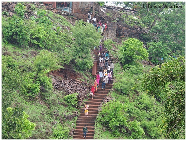 The Omkareshwar Dam can be seen from here and then a few steps ahead a rocky path leads to the banks of the river while the one upward leads to the temple. It was nearly half past three and I had to rush for my date with Shiva in his abode which was to close doors for mortals like me at 4pm.