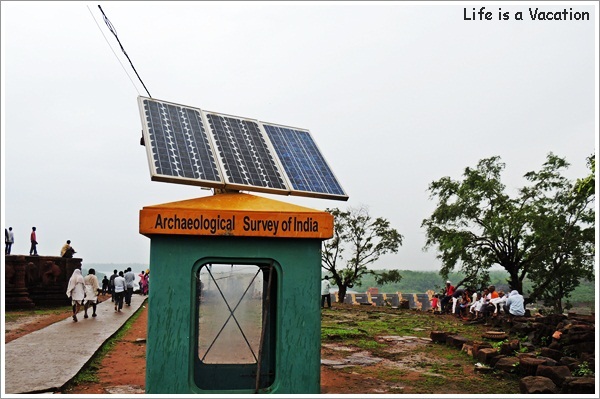 After a while I find a group of people praying within ruined remains of statues smeared with orange vermilion. While they thought, I was too close to their prayer, I was amused by the blessing on the tree :). This is the highest point in the path after which a steep set of stairs lead us down through another doorway (Suraj-Chand Darwaza) and the first thing I notice is the solar panel above the ASI Watch Box. Go Green India !!