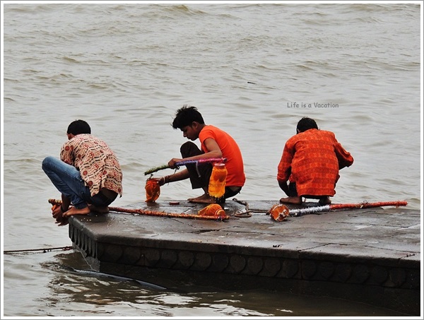 After reaching Maheshwar, I spent the entire day in the Ghats except for a quick lunch break watching more of the Kavad Yatris. After a quick ritualistic dip, they emerged in saffron clothes to the chants of “Bol Bam”. The small child who came along with his father was the most enthusiastic of the lot, scrubbing his pot clean before he filled it with water.
