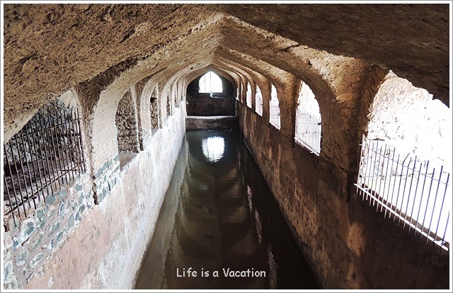 A narrow stairway took us to the Ist level which is marked by a hallway with arched gateways. The stone walls stared back stoically having concealed a story of love and loss for centuries. The structure seems like an army watch tower given its stone structure that sharply declines on one side making it effective to watch over for approaching enemies.