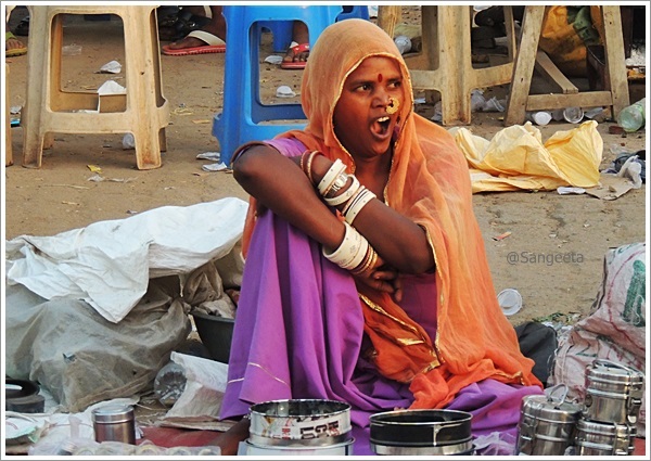 Pushkar is a small town in Rajasthan famous for its annual fair which attracts people from all over the world. Held for about a week with a run up to the full moon in November every year this is also one of the largest cattle fairs in Asia. While there is a brisk buy and sale of cattle (camels and horses) going on in the expansive fair ground, the near by stadium comes alive with various cultural programs. I was there on the last day of the fair in 2014, when the dust from the cattle hooves was settling down after busy trading days and the food, art and craft stalls were doing brisk business with locals from nearby villages. Thousands had taken a dip in the Pushkar Lake which was supposed to be borne out of the lotus flower that fell from the hand of Lord Brahma in hope of blessings for their life ahead and the atmosphere was electric. Women in colourful clothes were out to buy utensils and knick knacks haggling over a rupee or two with the merchants from out of town.