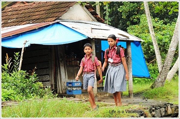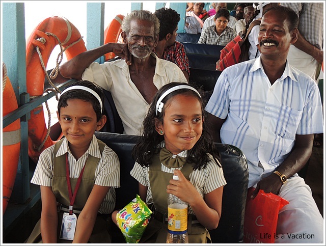 The next day, I spent in the backwaters in Alappuzha (Alleppey). This time, I wanted to do it different and instead of a private secluded trip, I opted to do it the everyday way. I took a 2 hour ride this time boarding a local ferry from the jetty which was going to Kolath. For a princely sum of Rs 14/- for the round trip, I traveled with the locals observing life as it showed up at the window. As I seated myself next to a bunch of giggling children, I realised I was returning home with them. From practicing their conversational English with me, to telling about life and school and showing me sights on the way, and teaching me a word or two in Malayalam, they made me realise that the best things in life are almost free. We passed by the Nehru Stadium where the prize distribution for the annual boat race is held. The large houseboats -Kettuvalams passed by with couples, familes and myriad groups on board. Most people appeared to be bored, they were observing from seclusion while I was in the middle of it all.