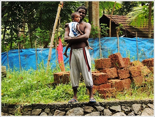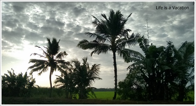 I spent Rs 1200/- for a 3 hour canoe ride all by myself chaperoned by 2 boatmen who kindly took me through the narrow passage ways, patiently paused as I clicked pictures and also showed me life along the way. What turned out to be a unique experience for me was actually life as usual. Women went about their daily chores, fishermen went about their livelihood, children were going to school and the infant was safe and warm in her father’s lap. We passed by green paddy fields lined with coconut and palms with gentle drizzle for company. Soon we reached the mouth of the canal which merged into a large lake. It was green all around, and I spotted a bunch of yellow birds who flew by before I could even press the shutter. After a while, we docked and walked through a slushy path jumping over pools of water for the rocky beach in Pallithodu.