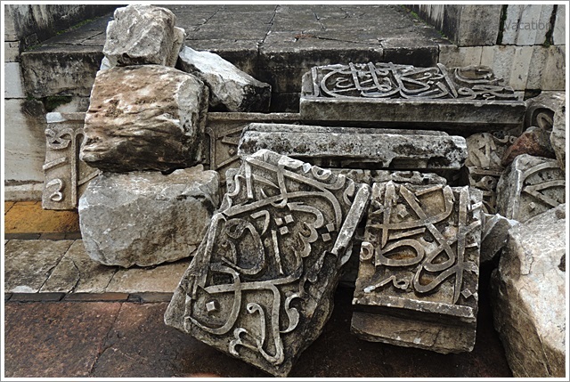 Jami Masjid is a 15th century structure which is said to be inspired by the Ommayad Mosque of Damascus. One look at the majestic red stone structure across the uber green lawn and it is apparent that it was conceived a a large expansive structure with a huge prayer hall. The arched hallways are simple and spartan except for the marble Chattri like structure which us carved exquisitely and has blue enameled work at the background “meenakari”. As you walk through the hallways and look closely at the pillars and arches, the Hindu influence is very apparent, the bells, the lotus, the flowers and temple dome.