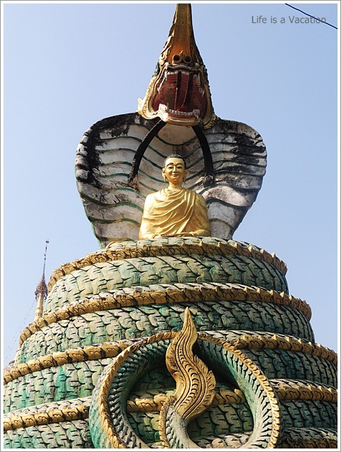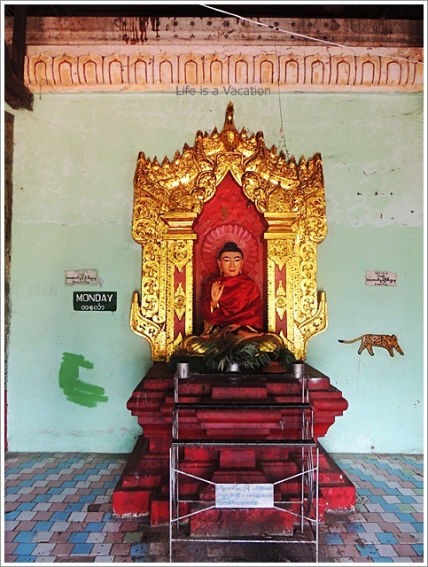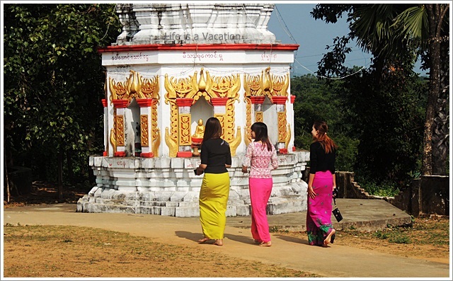 We climbed a watch tower to get a glimpse of Tamu town. The Buddha statues here were in Bhumisparsha Mudra where the fingers of the right hand touch the earth signifying the earth as the witness at the moment of his enlightenment. Everything around, seemed to have some strange connection with Hinduism; Buddha protected by a large Cobra similar to Shiva, the nine forms of Buddha arranged the way the Navagraha Planetary temples are in India. Just then a group of pretty young girls in colorful sarongs came by, kneeling down in prayer and quietly left before I could manage to strike a conversation.