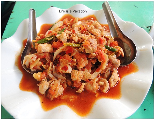 We lunched at the local favorite Waterland and settled down for some Chicken with Bamboo Shoots and shredded herb chicken with sticky rice. The chicken was not spicy but the fermented bamboo shoots were more than pungent. Unlike my usual self, I was playing it safe since I had a long ride ahead and kept the Mohinga or Khau Suey for another day. The crowd had a good mix of locals and Indians, Manipur being a dry state this is the nearest watering hole for Indians. Except for the hip owner, the young sarong clad waitresses did not speak Hindi or English yet they did not hesitate to tap their feet to Bollywood numbers.