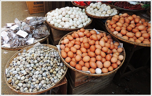 Burmese seem to love their eggs and the pretty ones of the quail seemed like marble stones. I was surprised to see the flat pan that is frequently used in South India for Paniyaram and Unniappam. I quickly bought 5 pieces for Rs 10 . One bite into the delicious ball, it was soft and gooey; rice flour batter mixed with egg. This seems to be an Indian influence since Burma has a long history with people from India specially Tamil Nadu who migrated in droves in 19th century to set up businesses and join the civil & administrative services.
