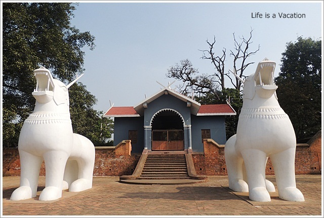 Kangla or the Dry Land is the ancient capital of the Meitei rulers since 33AD. All that remains is the ruined fort in the heart of the city of Imphal which was handed over to the Manipuris in 2004 by the Central Govt of India. Over the 275 acres of green there is the fort, the museum, the ancient temples of Pakhanba and Govindajee, the crematoriums of the kings, bungalows of the British generals and the quietly flowing moat which once protected from the external attacks.