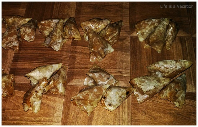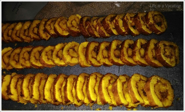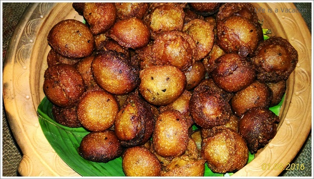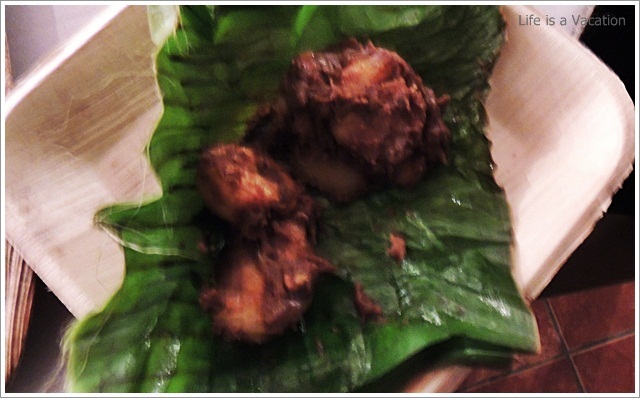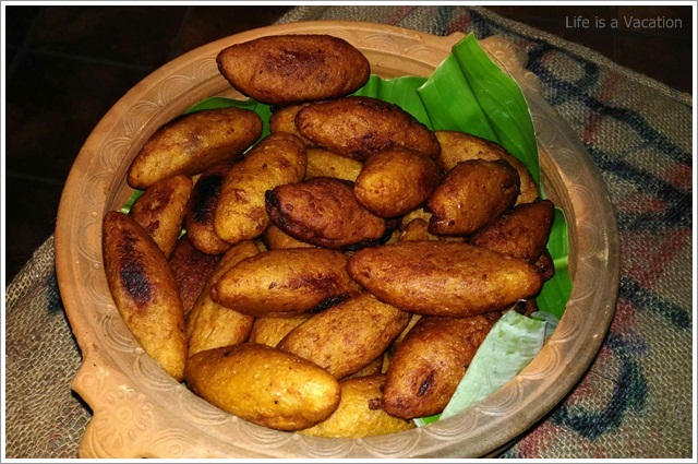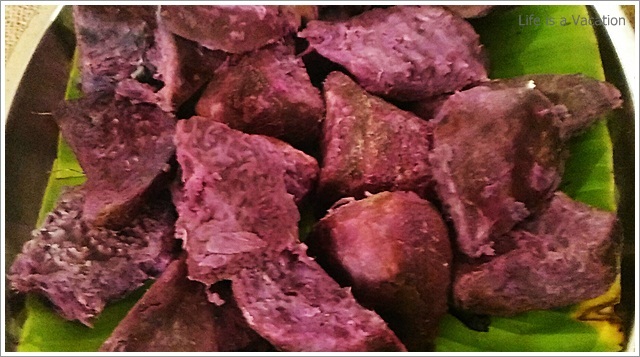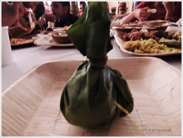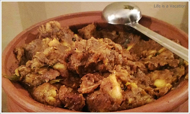 The starters and curries had a mix of vegetables (pineapple, ladies finger, tapioca, jackfruit, sweet potato, yam) and the main course had fish, dried fish, chicken, pork and beef. Since I am staying away from all kinds of red meat, I just took a helping of pork fry which was simply delicious. I loved the dried fish curry with the tapioca, the grated pineapple curry, the prawns baked in banana leaf along with tapioca, the ladies finger cooked in coconut milk, the spicy tender jackfruit fry and I can go on and on. I am a little ashamed but I do not remember the names of all that I had !! To name a few Kappa Unnakka Chemmen Cutlet; Maathi Fry; Kappa Vevichatu; Varal Meen, Etangadi Puzhukku; Meen Vathichatu; Chakkakuru Manga Curry etc etc