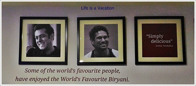 The decor was simple and warm; proudly displaying some of their chefs in action and the spices that they use to maintain consistency. Their staff are courteus and welcoming and seated us in a corner which gave me a good glimpse of the wall with pictures of their celebrity patrons; 2 faces Sachin Tendulkar and Salman Khan make me smile any time, any where as I grow old with my girlhood heroes.