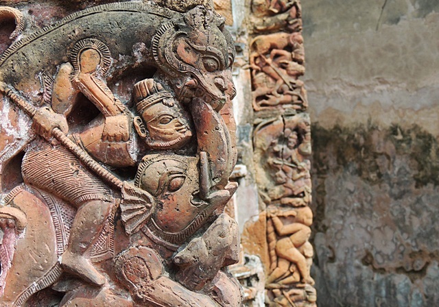 The terracotta art on the temple is detailed and absolutely stunning; it conveys so much about life then. The most notable one is the Mahishasur Mardini which simply breathes life.