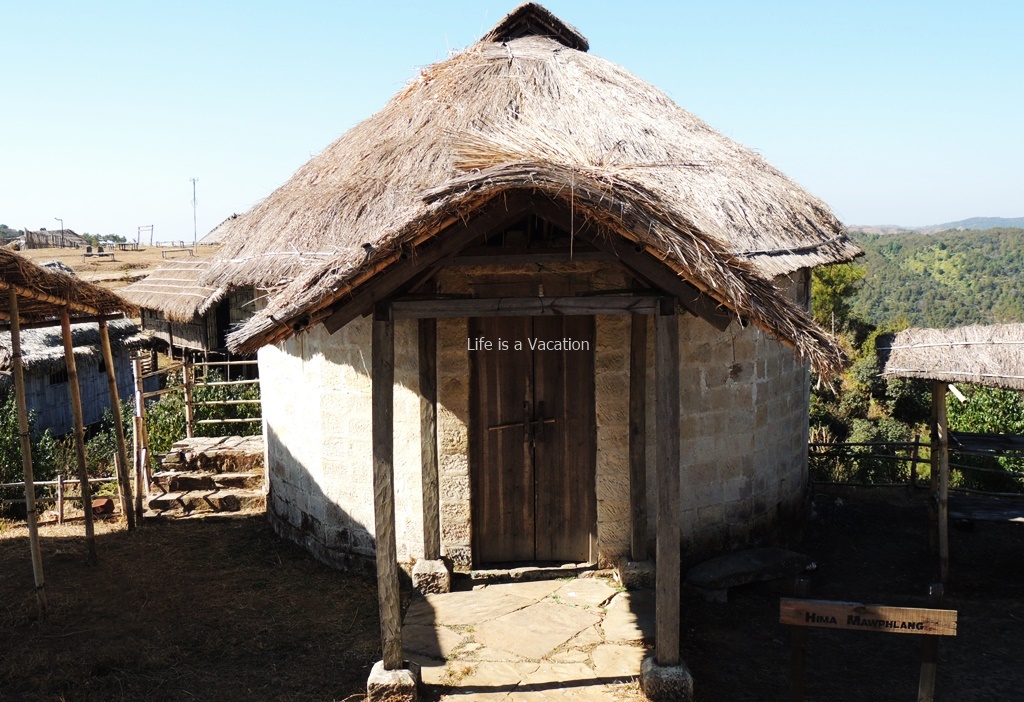 The heritage village is just about a meadow away from the Sacred Forest. The sprawling gated complex has houses or “Hima” constructed by Khasi Village names or Tribes names. Most of them are made of bamboo and thatch except one which had a stone base and circular structure which turned out to be “Hima Mawphlang”.