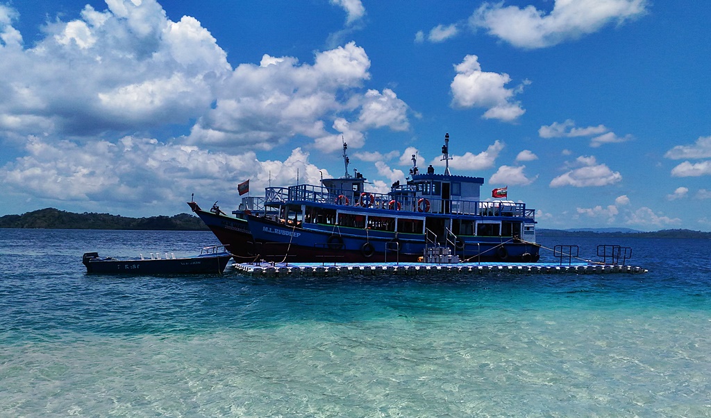 The ferry ships leave one after the other from Wandoor Jetty each one with capacity of about 40-50 passengers. It takes about 45 minutes to complete the journey through the territorial waters to the open sea where Jolly Buoy Island is located.