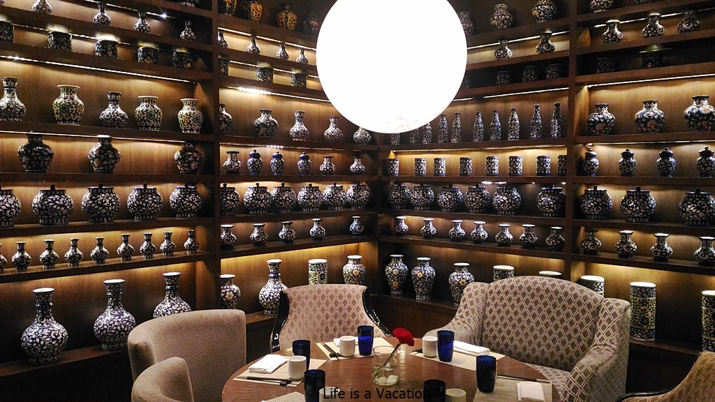 It was sometime close to Christmas when we dropped by to celebrate an anniversary in the family. Lantern was an obvious choice since everyone was feeling decidedly Chinese and Ritz Carlton with all the festive decor and lights had the perfect ambiance. This restaurant is located in a separate ante building from the main building and sometimes the entrance can get confusing. The restaurant has a bright vibrant look with all the red and green glass vases and the blue pottery donning the walls. I actually felt like I was inside a Lantern, all warm and cosy. We sat inside since we were quite a large group and the alfresco area is suitable for twosomes or solo diner.