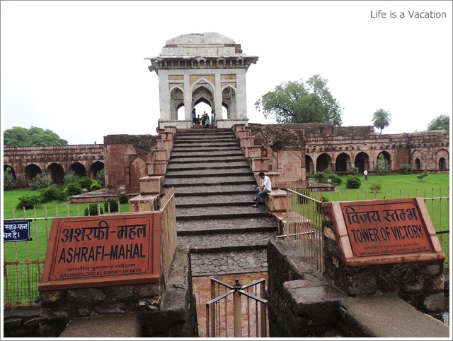 The ruined structure opposite the Jama Masjid is Ashrafi Mahal which was originally built as a Madrassa or a school for Islamic Studies. The marbled walls have since crumbled but the small cubicles meant for studies can still be seen. One of the towers of the madrassa was later constructed as a lofty column- ” Tower of Victory” to commemorate the victory of Mahmud Khilji over the Maharaja of Mewar. The flight of stairs leads up to the roof of the structure providing a majestic view of Jami Masjid.