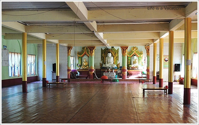 After 2 hours we reached the border town of Moreh and after producing our I Cards and Indian Citizenship proof, we were given a permission letter to drive to Burma with the car. We adjusted our watches since Myanmar is 1 hour ahead of Indian Standard Time. As soon as we crossed over the Friendship Bridge we had to drive on the other side of the road. Our first destination was the Monastery, which seems to have seen glorious days in the past. The large Buddha Statues, the gilded pagoda tops and the bright yellow flowers added color and harmony to the sound of silence.